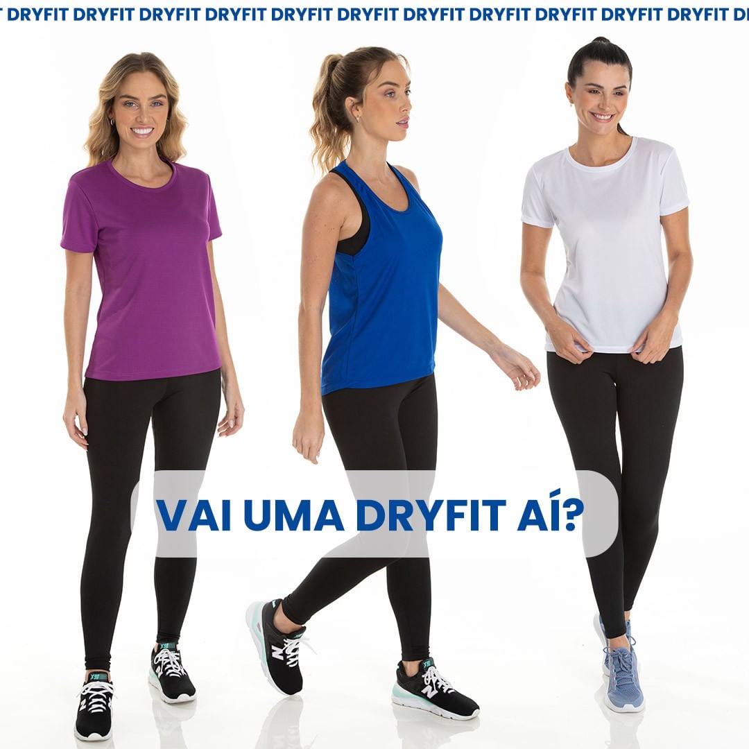 As malhas com acabamento dry fit possuem tecnologia que aumenta a eficiência da troca de calor entre o corpo e o ambiente. Assim, o suor evapora com mais facilidade e a colaboradora possui maior conforto térmico.