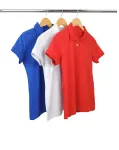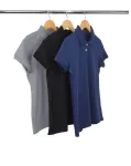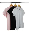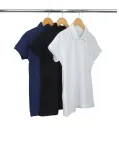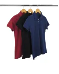 Camisa polo feminina feita com malha tecida com 50% dos fios de algodão e 50% de poliéster.Pode ser personalizada através de estamparia e bordados. Possui costura reforçada de ombro a ombro e reforço de gola dando sustentação e caimento perfeitos.É muito utilizada para uniformes e eventos pois tem durabilidade maior e ótima aparência, além de pouco encolhimento. Possui dois botões e possui gola e punhos em retilínea diferenciados.