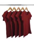 O Kit de 5 Baby Looks Vermelha de Algodão Premium é composto por camisetas de manga curta, feminina, com gola redonda costurada com pesponto. Esse detalhe confere um ótimo visual e acabamento à peça!