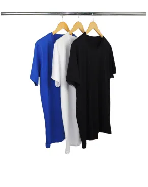 Esse combo é composto por 3 camisetas de algodão sendo nas cores (branco, preto, azul royal).