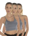 O Kit 3 Tops de Alcinha Fitness Feminino Preto não possui bojo mas conta com uma malha reforçada evitando transparência.