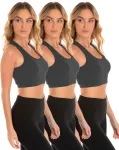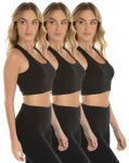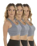 O Kit 3 Tops Nadador Fitness Feminino Preto, não possui bojo mas conta com uma malha reforçada evitando transparência.
